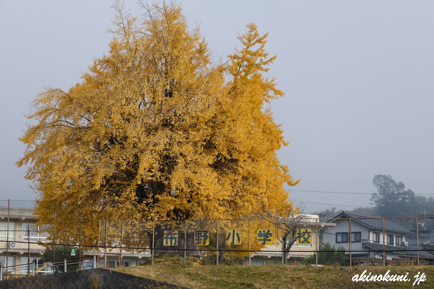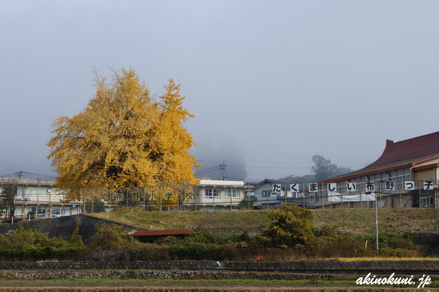 週中の天気予報では、24日は雨が降るような予想でした。しかし、前日の予想では雨はなさそう。そんなわけで、"これまで訪れたことがない銀杏を観に行こう"と探してたどり着いた銀杏のひとつがこの布野小学校の銀杏だったのです。