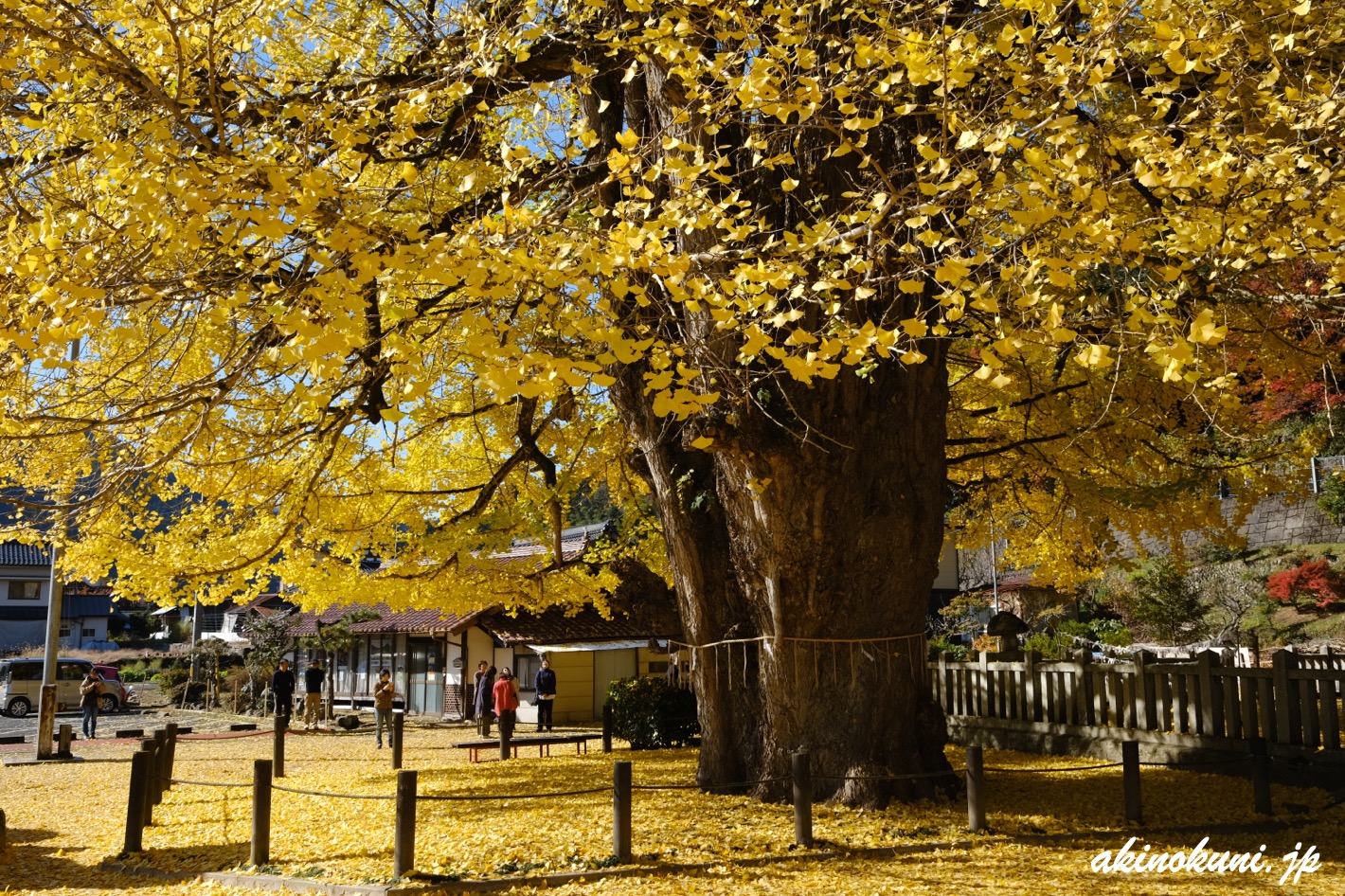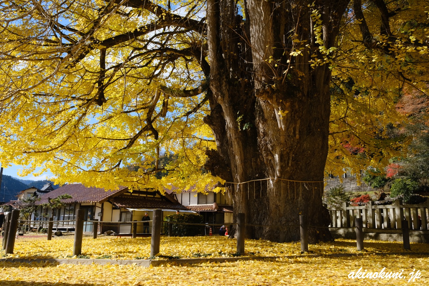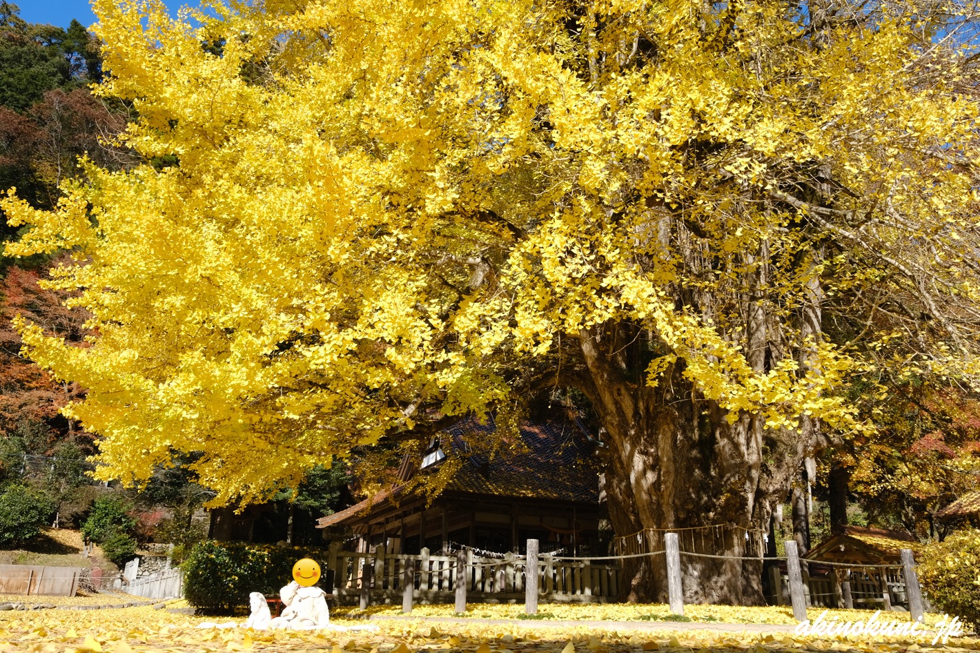 想像していたよりも落葉していましたが、まだまだとてもキレイでした(^-^)。そして"落葉している"ということは、黄色い絨毯が拡がっているわけで… 私が筒賀の大銀杏を訪れるのは早めのことが多く、黄色い絨毯を見ることはあまりありません。そのため、これはこれでアリです(笑)。
