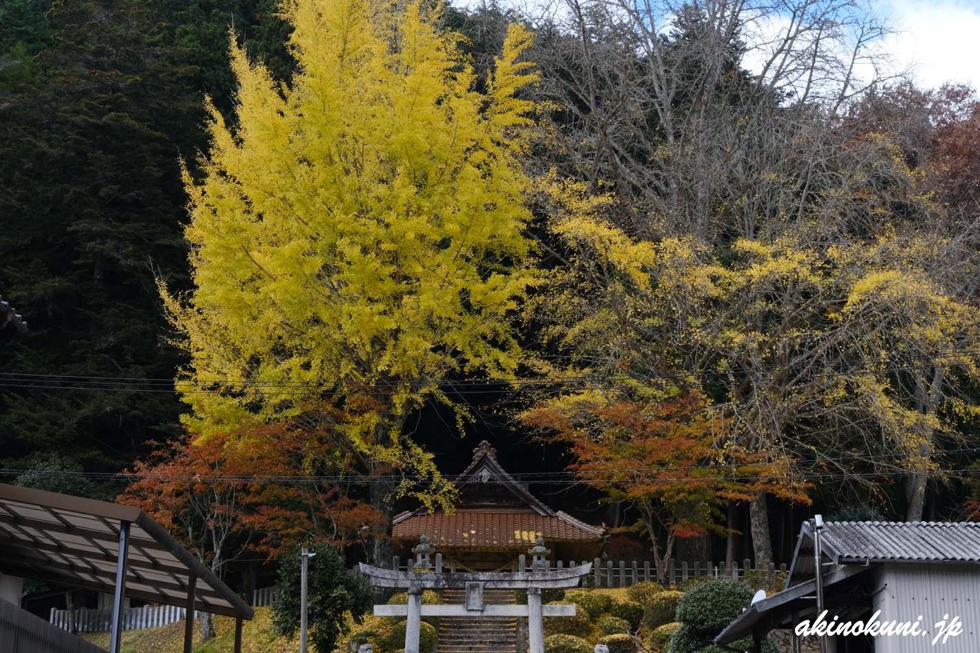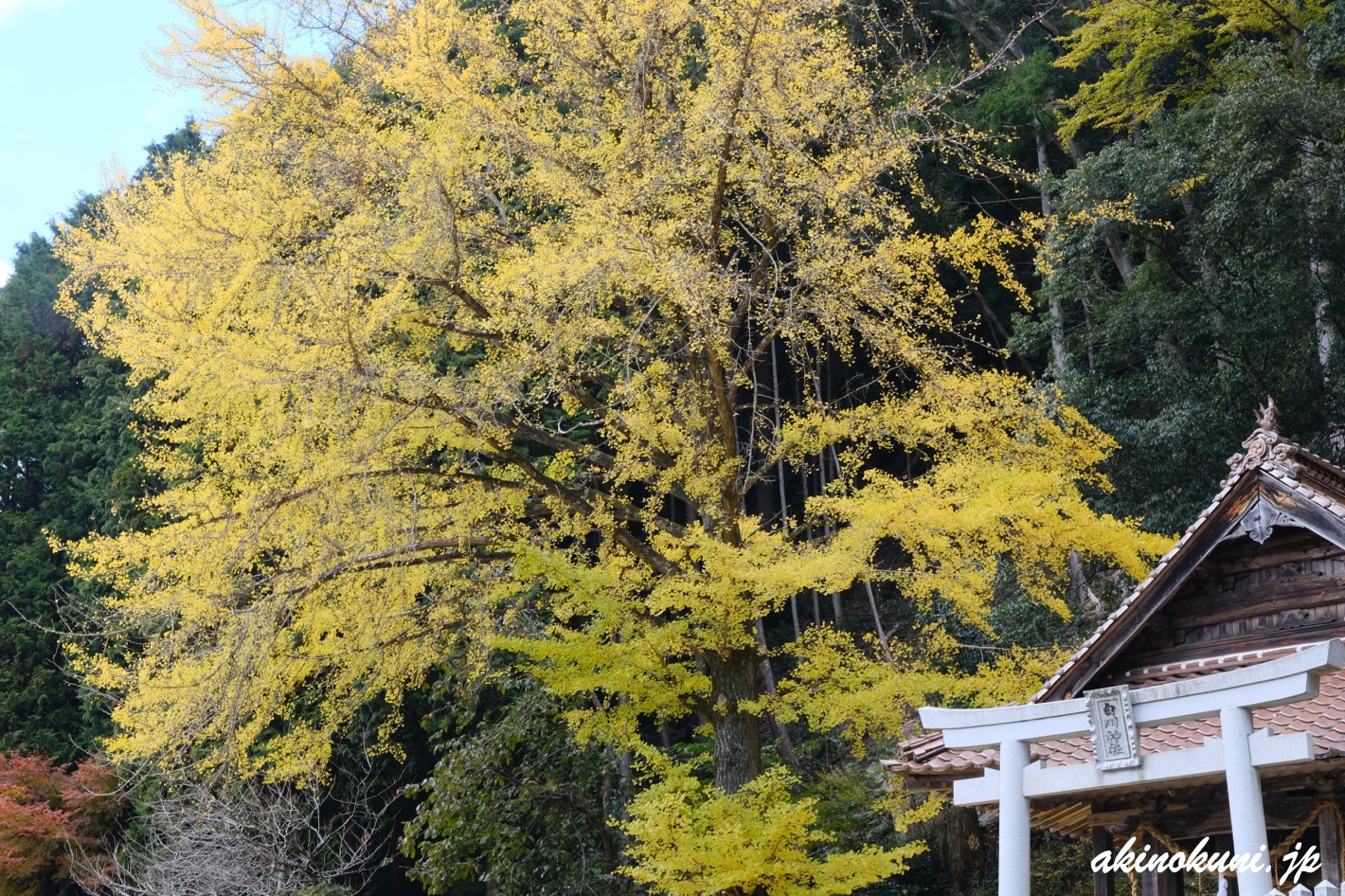 道中に見ることができる客人神社と白川神社の銀杏の11月19日の様子も。客人神社はちょっと県道41号から入りますけど、まぁ道中ということで(^^(^^;。