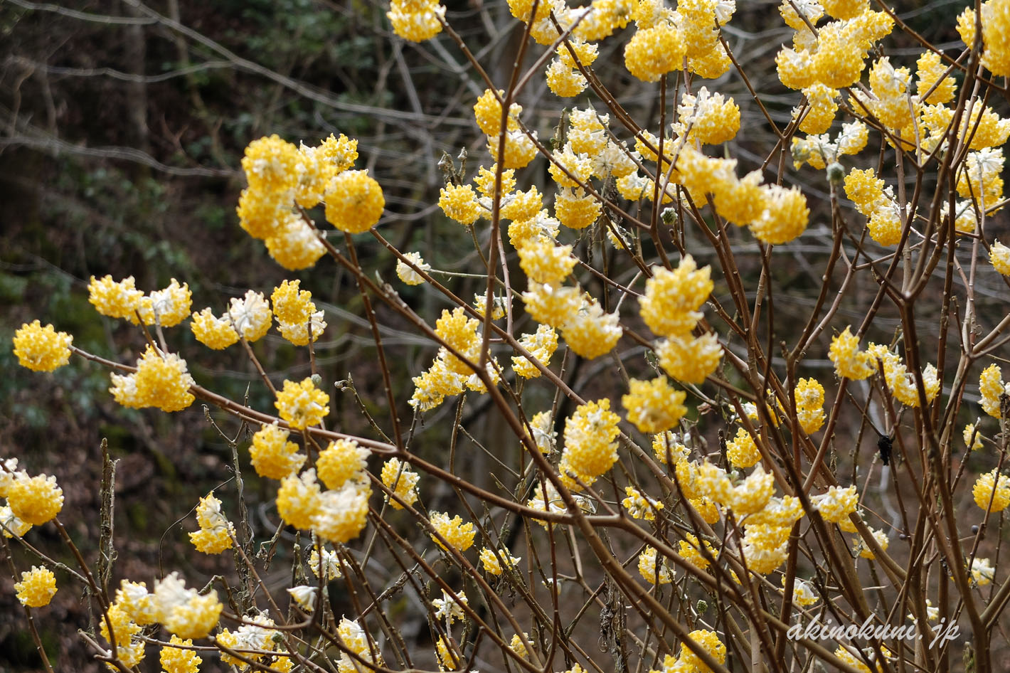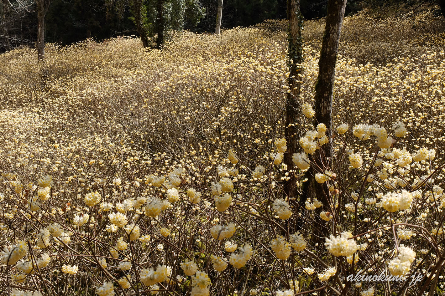 ちなみにこの三椏ですが、結構背があります。群生地内の遊歩道に人が入ると、人はまったく見えない状態となります。この日は車で5台程度、人数で10名以上の方が来訪しており、これらの写真を撮るときも遊歩道を歩いていらっしゃいましたがまったく写っていません。