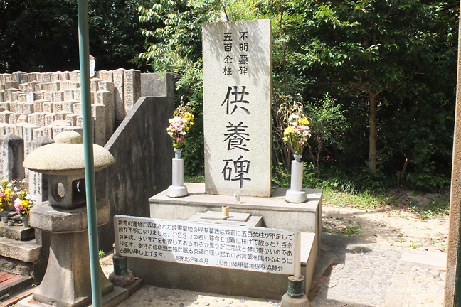この墓地には、約3,500基の墓石とともに、全国から多くの人々の遺骨が合葬されています。また、当地の南側には多くの慰霊碑が設置されています。