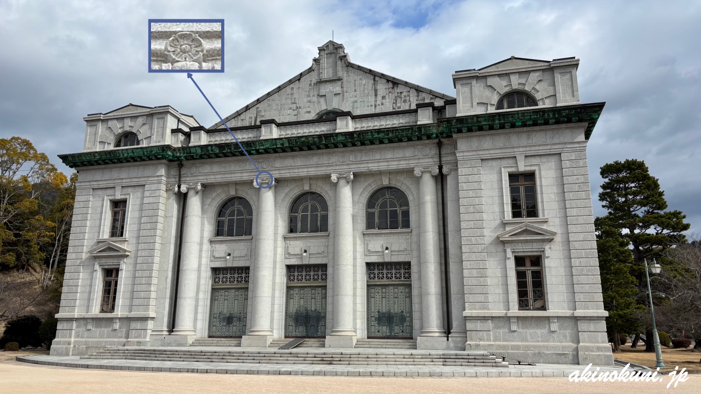 しかしこの平民口の入口は凄い。4本の列柱とそのあいだに重厚な扉。そして今回ガイドさんに教えていただいたのが、列柱の上に桜があるということ。"菊ではなく桜です"と説明されていました。